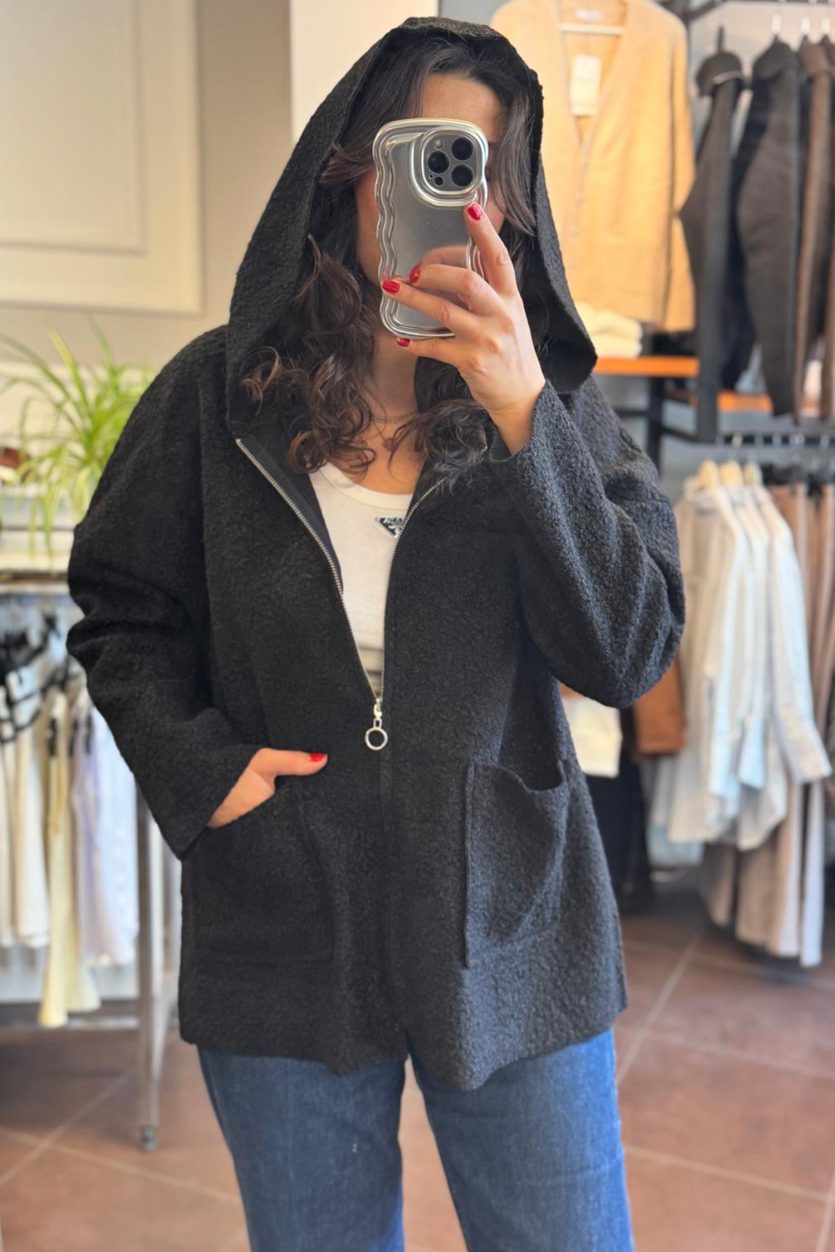Buklet Kumaş Standart Beden Hırka Siyah