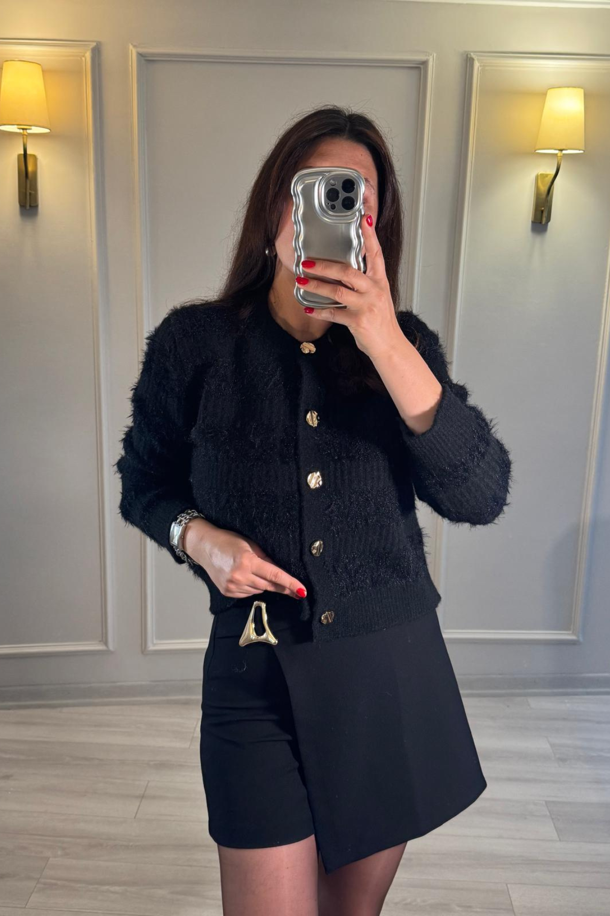 Dilvin Gold Düğmeli Yumoş Hırka Siyah